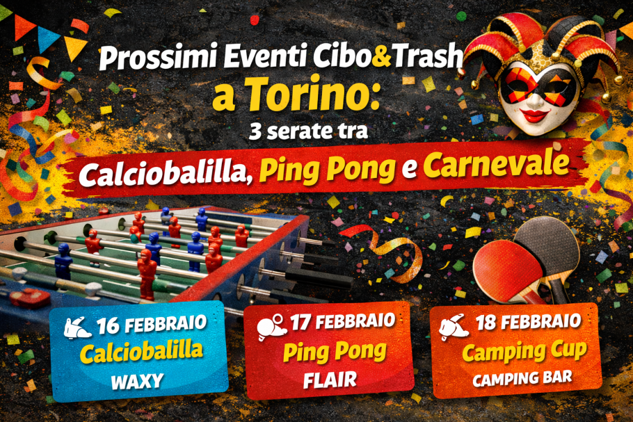 Se stai cercando cosa fare a Torino nei prossimi giorni, Cibo&Trash organizza tre eventi consecutivi tra sport amatoriale e festa di Carnevale.